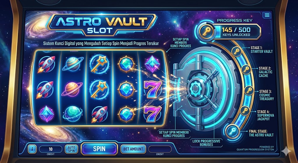 Tidak semua slot langsung memberikan hasil instan. Beberapa justru membangun ketegangan lewat sistem progres. Astro Vault Slot masuk ke kategori itu karena setiap spin terasa seperti membuka kunci menuju sesuatu yang lebih besar.