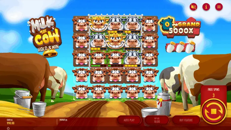 Jika seluruh grid berhasil dipenuhi simbol Cow selama Hold & Win Bonus, pemain langsung mendapatkan kemenangan maksimal 5000x taruhan.